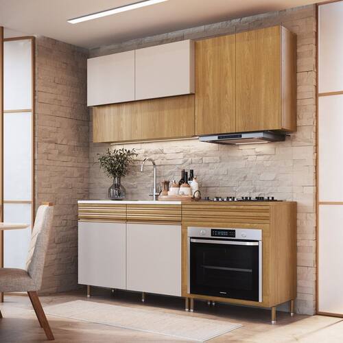 Itens Inclusos: 1 Balcão 1,2m, 1 Balcão 0,cm p/ Forno de Embutir, 1 Aéreo 1,2m, 1 Aéreo 0,8m e Manual de Montagem.
