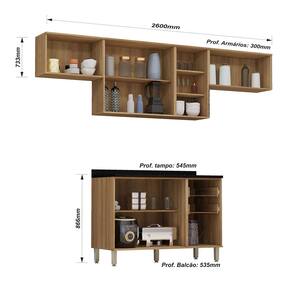 Medidas Gerais do Ambiente 220 x 260 x 54,5 -Alt x Larg x Prof - cm- Volumes: 9 unidades