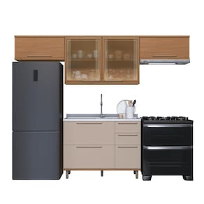 A Cozinha Modulada Compacta Fidelitá Barcelona combina funcionalidade e estilo para transformar o seu ambiente. Composta por 4 módulos práticos e sofisticados, ela entrega uma estética refinada nas cores Freijó e Camurça, valorizando ainda mais o espaço com detalhes em vidro Reflecta e acabamentos robustos.