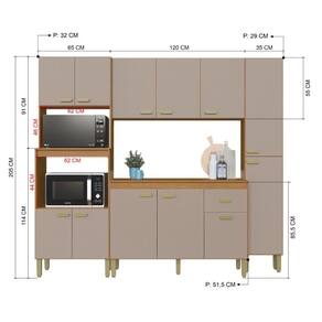LARGURA (CM): 220 | PROFUNDIDADE (CM): 53 | Tipo de móveis de cozinha: Armário/Balcão | ALTURA (CM): 205 | QUANTIDADE DE PORTAS: 12 | QUANTIDADE DE PEÇAS: 4 | Cor: Freijó/Camurça | TAMPO DO BALCÃO INCLUSO: SIM | Inclui tampo: Sim | Inclui manual de montagem: Sim | Requer montagem: Sim | Marca: Fidelitá Móveis | Estilo: Moderno | Condição do item: Novo | Modelo: Mariana | MATERIAL: MDP