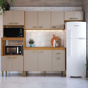 Composta por módulos avulsos, a Cozinha Mariana permite total flexibilidade na montagem, possibilitando diferentes composições de acordo com o espaço disponível. Seu espaço interno bem distribuído com prateleiras e divisórias garante excelente organização de utensílios, mantimentos e eletros.