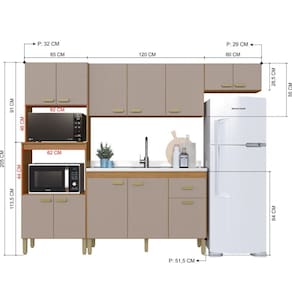 - Profundidade: 53cm (balcões) | 29cm (aéreos)