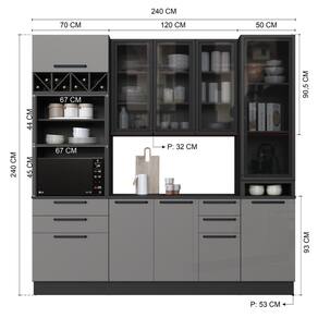 Produzida em MDP de alta qualidade, conta com pintura UV perolizada na cor Titânio e acabamento impecável. Entre os diferenciais estão: dobradiças metálicas com slow motion, corrediças telescópicas, puxadores em metal, prateleira removível, portas com vidro fumê e agora o rodapé presente em todos os módulos inferiores, proporcionando um acabamento integrado e proteção contra umidade.
