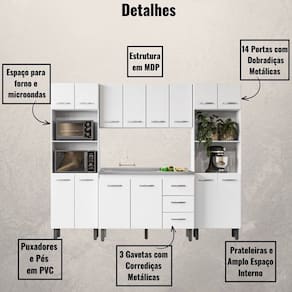 Cozinha Modulada Completa 14 Portas e 03 Gavetas Mara Branco Moblis