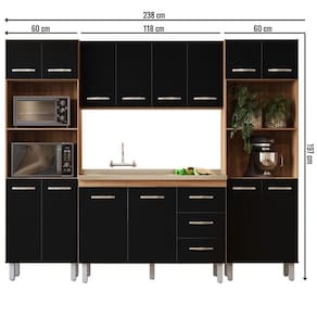 Dimensões: Paneleiro Mara Altura: 197 cm Largura: 60 cm Profundidade: 37,8 cm Aéreo Mara Altura: 52 cm Largura: 118 cm Profundidade: 27 cm Balcão Bianca Altura: 82 cm Largura: 118 cm Profundidade: 50 cm