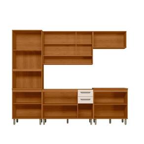 Medida de cada item (A x L x P): Paneleiro torre quente: A.228cm x L.70cm x P.50cm | Aéreo 3 portas: A.79cm x L.120cm x P.32cm | Aéreo geladeira: A.40cm x L.80cm x P.32cm | Balcão 120cm: A.86cm x L.120cm x P.50cm | Balcão 80cm: A.89cm x L.80cm x P.50cm.