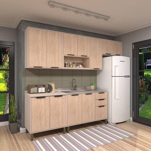 Desenvolvida com materiais de excelencia, a Cozinha Stylo oferece excelente distribuicao de espaco interno. E estruturada em 100 MDP e possui dobradicas slow motion com amortecedor incorporado para fechamento suave das portas. Conta com puxadores tipo aste em Aluminio Preto dando um toque especial de classe e elegancia.