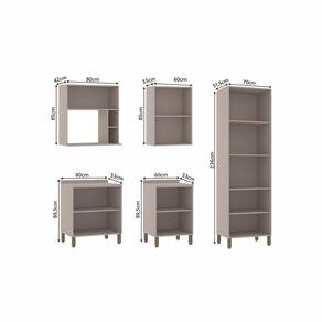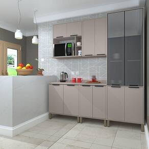 Cozinha Modulada Completa 5 Peças Paneleiro com Vidro Reflecta Aéreos e Tampos Stylo Luciane Móveis - Cinza
