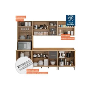 Cozinha Completa Áustria 5 Peças (1 Paneleiro + 2 Armários + 2 Balcões) C5P50 Cinamomo/Off White - Valdemóveis Abaixo segue os produtos que compoem o KIT: - Paneleiro de Cozinha Áustria c/ 4 Portas 70cm Cinamomo/Off White - Valdemóveis - 1 unidades Dimensões: Alt: 226,0cm x Larg70,0cm x Comp/Profund:70,0cm