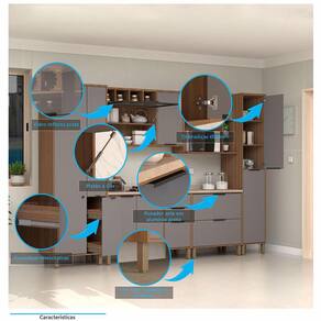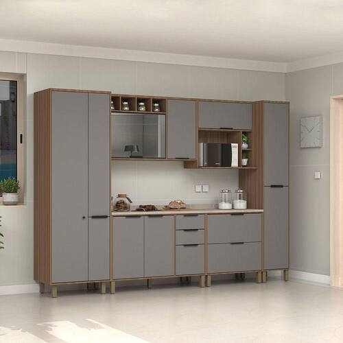 Desenvolvida com materiais de excelência, a Cozinha Aspen oferece excelente distribuição de espaço interno para sua organização. É fabricada em 100 MDP e possui acabamento das portas em BP oferecendo durabilidade, resistência a riscos e fácil manutenção. Conta com puxadores tipo Alça em Alumínio Preto dando um toque especial de classe e sofisticação ao ambiente.