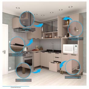 Informações Complementares 2 portas com Vidro Reflecta Prata. 2 Gavetas e 1 Gavetão. Pés com regulagem de Altura. Balcão e Aéreo de Canto podem ser montados para lado Direito ou Esquerdo. Pode ser utilizado com tampo ou pia, mas ambos não acompanham o produto. Suporta até 5kg nas gavetas, 9kg nas prateleiras e 15kg na base. Distribua uniformemente os objetos. Espaço para Forno ou Micro-ondas. ATENÇÃO: Na utilização de FORNO ELÉTRICO/GÁS é obrigatória a retirada do fundo -risco de super aquecimento-. As dimensões máximas do forno devem respeitar a margem de respiro, necessitando folga de 5cm entre forno e laterais do móvel.