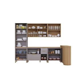 Une praticidade, seguranca e um design moderno! Feito 100 em MDF de alta qualidade, ele possui cantos arredondados que oferecem um visual suave e elegante, alem de garantir maior seguranca ao evitar arestas cortantes. Possui amplo espaco interno, podendo escolher na hora da montagem a configuracao que melhor se adapta ao seu espaco, com dois nichos para forno e micro-ondas ou um ninho e duas prateleiras para organizar seus utensilios e mantimentos de forma eficiente. As dobradicas Slow Motion com amortecimento garantem um fechamento suave e silencioso das portas, acrescentando conforto e durabilidade ao movel enquanto os puxadores embutidos mantem o visual minimalista e elegante.