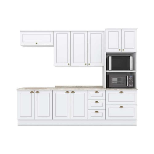 Cozinha Completa Americana 7 Peças (2 Armários + 2 Balcões + 1 Paneleiro + 2 Complementos) C7P01 Branco - Henn