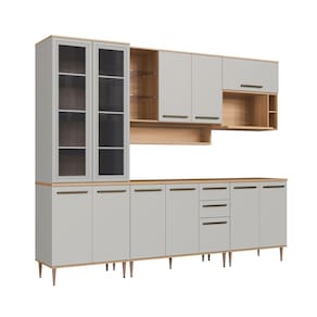 Cozinha modulada Isabelle possui surpreendente espaço interno, design e cores sofisticadas que combinam perfeitamente com qualquer decoração. As gavetas possuem corrediças telescópicas, as portas basculantes contam com dobradiças com amortecimento e pistão à gás para o fechamento suave, possui duas portas com vidro fumê e fechamento com pulsador magnético. Possui prateleiras internas. Com puxadores em alumínio com ponteira ABS e pés modernos com regulagem de altura. Esses itens de qualidade superior conferem durabilidade e maior vida útil ao móvel. Composta de chapa MDP 1,5cm e 2,5cm. Os módulos são avulsos (cada peça é independente uma da outra) e podem ser arranjados de diferentes formas, o que permite que, nesse caso, você monte uma cozinha do seu jeito.