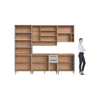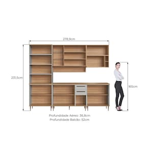 Medida de cada item (A x L x P): IS1851 – Cristaleira 0,80m – 231,5x79,9x52cm IS1630 – Aéreo 1,20m –1,20x75,5x36,8cm IS1500 – Balcão 1,20m – 95x1,20x52cm IS1611 – Aéreo 0,80m – 75,5x80x36,8cm IS1501 – Balcão 0,80m – 95x80x52cm IS1621 – Aéreo Micro –42,5x80x45cm IS1650 - Nicho – 22,5x119,8x15,5cm TB1225 – Tampo – 25x1,20x52cm