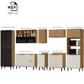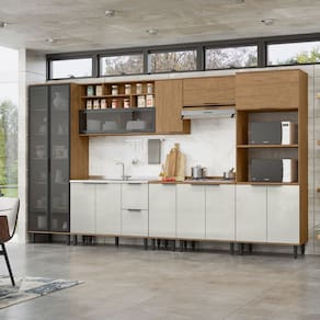 Como trata-se de uma cozinha modulada (Módulos Independentes), ela pode ser montada com um Layout diferente, dependendo do seu ambiente. Assim, se torna praticamente uma cozinha planejada para sua casa.