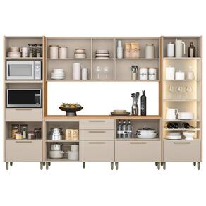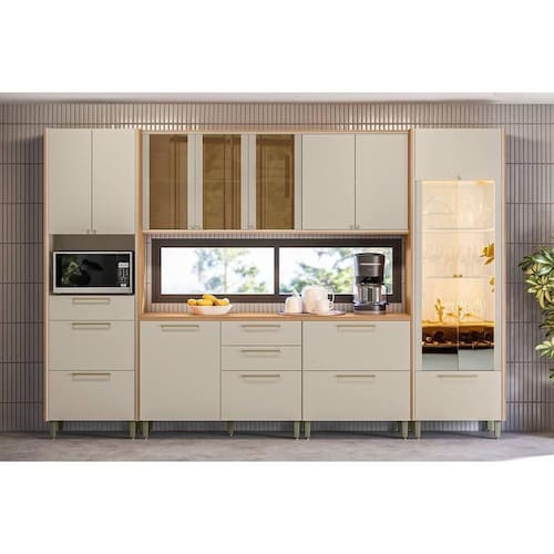 Cozinha Completa Atena 6 Peças (2Aéreos+2Balcões+1Cristaleira+1Paneleiro) CP03 Jequitiba/Off White Fosco - Linea Brasil Abaixo segue os produtos que compoem o KIT: