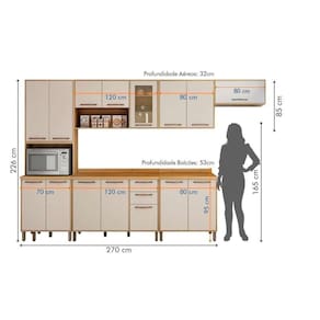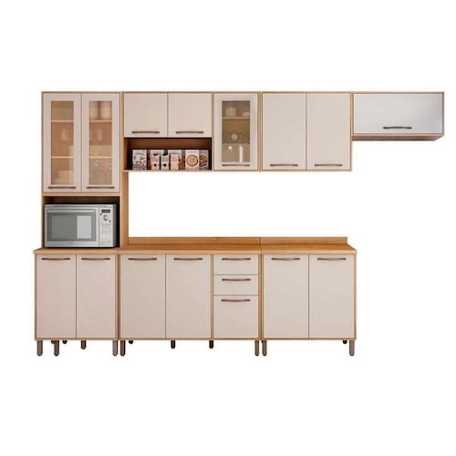 Cozinha Completa Áustria 6 Peças (1 Paneleiro + 3 Armários + 2 Balcões) C6P29 Cinamomo/Off White - Valdemóveis Abaixo segue os produtos que compoem o KIT: - Paneleiro de Cozinha Áustria c/ 4 Portas c/ Vidro 70cm Cinamomo/Off White - Valdemóveis - 1 unidades Dimensões: Alt: 226,0cm x Larg70,0cm x Comp/Profund:70,0cm