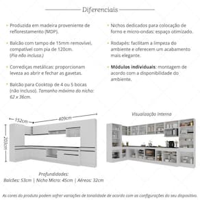 - Espaços internos amplos e bem distribuídos para organização de utensílios de cozinha e mantimentos.
