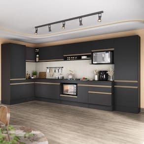 *O produto será entregue desmontado e não disponibilizamos o de montagem. Acabamento: Pintura UV | Tonalidade: Preto | Material: MDP | Referência do Modelo: MP2304 | Coleção: Veneza | Instruções de Cuidado: Limpar com pano seco para retirar o pó. Não utilizar produtos químicos ou abrasivos a limpeza. Não aplicar lustra móveis. | Sistema de Montagem: O produto acompanha manual de montagem juntamente com kit ferragem. O produto será entregue desmontado e não disponibilizamos o de montagem. | Produto Composto por: 2 paneleiros 62cm, 1 aéreo de canto 90cm, 1 aéreo 120cm, 1 aéreo 105cm, 1 aéreo 70cm, 1 nicho aéreo 70cm, 1 balcão de canto 90cm, 1 balcão 120cm, 1 balcão 105cm, 1 balcão 70cm, kit rodapés, manual de montagem e kit ferragem. | Altura Montado: 203 | Largura Montado: 409 | Profundidade Montado: 152 | Tamanho (L x A x P): 409 x 203 x 152 | Fabricante: Multimóveis | Requer Montagem: Sim | Quantidade de Portas: 15 | Quantidade de Gavetas: 2 | Quantidade de Prateleiras: 15 | Quantidade de Puxadores: 17 | Quantidade de Pés: 26 | Porta com Vidro: Não | Corrediça: Metálica | Material do Puxador: ABS | Material dos Pés: Polipropileno | Acompanha Pia Inox: Não | Balcão 120 cm para uso de pia: Sim | Tampo Incluso: Sim | Quantidade de Tampos: 4 | Material do Tampo: MDP | Espessura do Tampo: | Com Prateleiras: Sim | Produto: Cozinha | Tipo: Modular | RBN: 17100674011 | Altura (cm): 203 cm | Largura (cm): 409 cm | Profundidade (cm): 152 cm | Acessórios incluídos: N/A | Estado de Origem: RS | Produto precisa de Montagem?: Sim, sugerimos a contratação do nosso de montagem (para os CEPs em que o está disponível) ou de algum experiente de sua preferência | Altura do Produto com Embalagem: 161 | Ubicação do móvel: Não aplica | Largura do Produto com Embalagem: 66 | Peso do Produto com Embalagem: 272 | Nome do Produto no Fornecedor: Cozinha Modulada Completa Canto 409cm com Rodapé e Balcão para Cooktop Veneza Multimóveis MP2304 Preto/Dourado | Tempo de Garantia: 3 meses | Destaque 1: Produzido em MDP: maior durabilidade e resistência. | Destaque 2: Tamanho do produto montado (L x A x P): 409 x 203 x 152 cm | Destaque 3: Módulos individuais: possibilitam a montagem conforme a disponibilidade do espaço. | Destaque 4: Balcão com Cooktop e com espaço para forno: otimiza o espaço do ambiente. | Destaque 5: Balcão com tampo removível, com pia de 120cm. | Tipo de móveis de cozinha: Cozinha completa | Marca: Multimóveis | Materiais do corpo: MDP | Materiais das portas: MDP | Altura do armário: 203 cm | Largura do armário: 409 cm | Profundidade do armário: 152 cm | Altura do balcão: 84 cm | Largura do balcão: 348 cm | Profundidade do balcão: 90 cm | Modelo detalhado: N/A | Peso (kg): 272 kg | Estilo: Moderno | Capacidade máxima de peso: N/A | Com Pés ajustáveis: Não | Quantidade de caixas de embalagem: 22 | Peso do Produto: 272 | É personalizado: Não | Baterias são necessárias?: Não | Certificação de teste externa: Não aplicável | Is Fragile: Não | Peso do item: unit=kilograms;value=272 | Dimensões do item P x L x A: depth#value=152;depth#unit=centimeters;width#value=409;width#unit=centimeters;height#value=203;height#unit=centimeters | Quantidade de itens: 1 | da peça: | Duração da Garantia: 3 Meses | Montagem: Necessita Montagem | Tipo de Garantia: Garantia do Fabricante | Inclui manual de montagem: Sim | Palavras-chave: armario de cozinha, cozinha completa, cozinha compacta, cozinha planejada, cozinha modulada, balcao de cozinha, balcao de pia, cozinha modular, balcao cozinha, armario cozinha | Peso do balcão (kg): N/A | Peso do armário (kg): N/A | Componentes incluídos: Kit de instalação | Comprimento do Produto com Embalagem: 189 | Descrição do Tamanho: (L x A x P): 409 x 203 x 152 cm Cor: Preto/Dourado