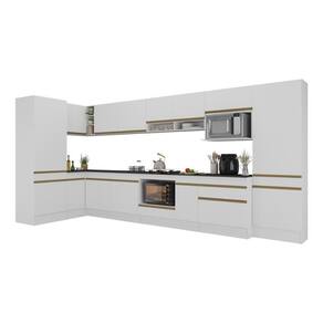 Acabamentos: Puxadores modernos em ABS e rodapés inclusos para facilitar a limpeza e garantir um visual finalizado.