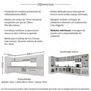 Dimensões Gerais: Largura: 409cm | Altura: 203cm | Profundidade: 152cm