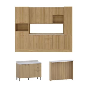 Cozinha Modulada Completa com Bancada Ilha 8 Pe?as com Tampo e Rodap? Classic Luciane M?veis