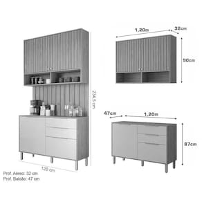 Abaixo segue os produtos do KIT: Cozinha Completa Divina 3 Peças (1Aéreo+1Balcão+1Complemento) CZ008 Freijo/Off White - MGM