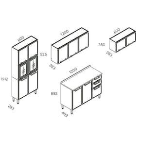 Abaixo segue os produtos do KIT: Cozinha Completa Estilo 4 Peças (2 Armários + 1 Balcão + 1 Paneleiro) C4P104 Cinza/Grafite - Bertolini