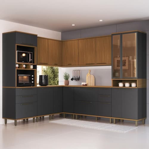 Beleza, funcionalidade e robustez em um só conjunto! A Cozinha França 8 peças traz um visual sofisticado com vidros Reflecta, puxadores metálicos e módulos inteligentes como torre quente, paneleiro duplo e cantos otimizados tudo para valorizar sua cozinha com mais praticidade e personalidade.