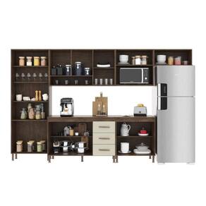 QUANTIDADE DE GAVETAS: 3 | LARGURA (CM): 330 | QUANTIDADE DE PORTAS: 15 | MATERIAL: MDP | ALTURA (CM): 204,5 | PROFUNDIDADE (CM): 53 | TAMPO DO BALCÃO INCLUSO: Sim | QUANTIDADE DE PEÇAS: 6 | Tipo de móveis de cozinha: Completa | Requer Montagem: Sim | Materiais do Corpo: MDP | Inclui manual de montagem: Sim | Cor: Noce/Off-White