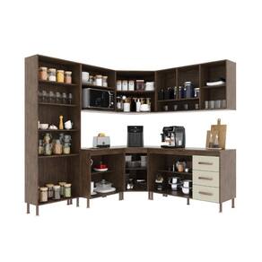 QUANTIDADE DE GAVETAS: 3 | LARGURA (CM): 410 | QUANTIDADE DE PORTAS: 16 | MATERIAL: MDP | ALTURA (CM): 204,5 | PROFUNDIDADE (CM): 53 | TAMPO DO BALCÃO INCLUSO: Sim | QUANTIDADE DE PEÇAS: 7 | Tipo de móveis de cozinha: Completa | Requer Montagem: Sim | Materiais do Corpo: MDP | Inclui manual de montagem: Sim | Cor: Noce/Off-White