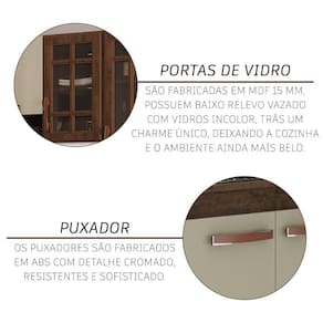 Com módulos avulsos, cada peça é independente, permitindo diferentes composições para melhor aproveitamento do espaço. Seu interior é bem distribuído, com prateleiras e divisórias que auxiliam na organização de utensílios e mantimentos.