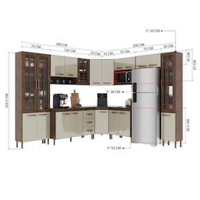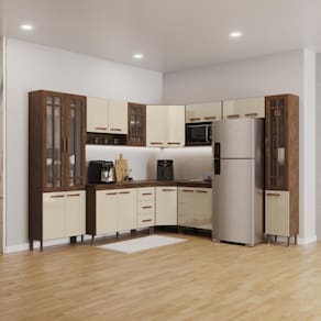 QUANTIDADE DE GAVETAS: 3 | LARGURA (CM): 515 | QUANTIDADE DE PORTAS: 20 | MATERIAL: MDP | ALTURA (CM): 204,5 | PROFUNDIDADE (CM): 53 | TAMPO DO BALCÃO INCLUSO: Sim | QUANTIDADE DE PEÇAS: 9 | Tipo de móveis de cozinha: Completa | Requer Montagem: Sim | Materiais do Corpo: MDP | Inclui manual de montagem: Sim | Cor: Noce/Off-White