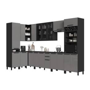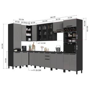 MATERIAL: MDP | Tipo de móveis de cozinha: Cozinha Completa | TAMPO DO BALCÃO INCLUSO: SIM | QUANTIDADE DE GAVETAS: 2 | QUANTIDADE DE PORTAS: 18 | PROFUNDIDADE (CM): 53 | ALTURA (CM): 240 | QUANTIDADE DE PEÇAS: 10 | LARGURA (CM): 529 | Inclui tampo: Sim | Materiais do corpo: MDP | Inclui manual de montagem: Sim | Cor: Chumbo/Titânio