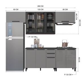 MATERIAL: MDP | Tipo de móveis de cozinha: Cozinha Completa | TAMPO DO BALCÃO INCLUSO: SIM | QUANTIDADE DE GAVETAS: 2 | QUANTIDADE DE PORTAS: 10 | PROFUNDIDADE (CM): 53 | ALTURA (CM): 240 | QUANTIDADE DE PEÇAS: 5 | LARGURA (CM): 280 | Inclui tampo: Sim | Materiais do corpo: MDP | Inclui manual de montagem: Sim | Cor: Chumbo/Titânio