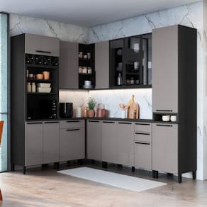 A Cozinha Mônaco da Fidelitá oferece a combinação perfeita entre sofisticação, praticidade e design moderno. Essa composição com 8 módulos é ideal para ambientes amplos, trazendo soluções inteligentes de organização, acabamentos premium e presença marcante com detalhes em vidro fumê.