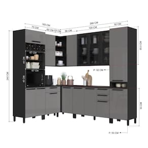 MATERIAL: MDP | Tipo de móveis de cozinha: Cozinha Completa | TAMPO DO BALCÃO INCLUSO: SIM | QUANTIDADE DE GAVETAS: 3 | QUANTIDADE DE PORTAS: 15 | PROFUNDIDADE (CM): 53 | ALTURA (CM): 240 | QUANTIDADE DE PEÇAS: 8 | LARGURA (CM): 449 | Inclui tampo: Sim | Materiais do corpo: MDP | Inclui manual de montagem: Sim | Cor: Chumbo/Titânio