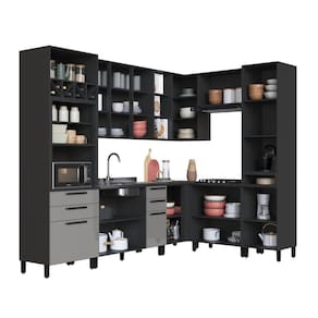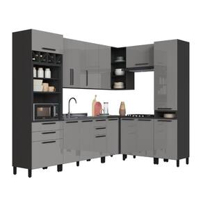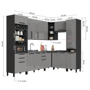 MATERIAL: MDP | Tipo de móveis de cozinha: Cozinha Completa | TAMPO DO BALCÃO INCLUSO: NÂO | QUANTIDADE DE GAVETAS: 4 | QUANTIDADE DE PORTAS: 15 | PROFUNDIDADE (CM): 53 | ALTURA (CM): 240 | QUANTIDADE DE PEÇAS: 8 | LARGURA (CM): 469 | Inclui tampo: Não | Materiais do corpo: MDP | Inclui manual de montagem: Sim | Cor: Chumbo/Titânio