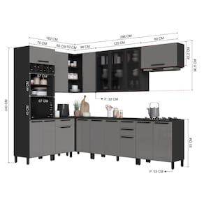 - Profundidade: 53 cm (balcões, torre e paneleiros) | 32 cm (aéreos)