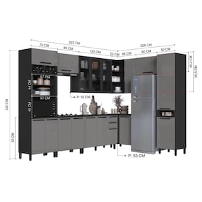 MATERIAL: MDP | Tipo de móveis de cozinha: Cozinha Completa | TAMPO DO BALCÃO INCLUSO: SIM | QUANTIDADE DE GAVETAS: 2 | QUANTIDADE DE PORTAS: 17 | PROFUNDIDADE (CM): 53 | ALTURA (CM): 240 | QUANTIDADE DE PEÇAS: 9 | LARGURA (CM): 549 | Inclui tampo: Sim | Materiais do corpo: MDP | Inclui manual de montagem: Sim | Cor: Chumbo/Titânio