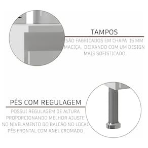 Para completar, ambos os balcões acompanham tampos de MDP 15mm que podem facilmente ser removidos para colocação de pia com espaço de 120cm x 52cm.