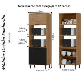 1- Torre Quente com espaço para 2 Fornos: Altura: 230 | Largura: 80| Profundidade: 51,6 Cm