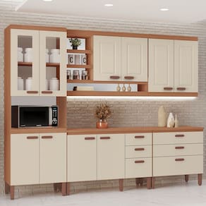 Cozinha Modulada Completa Móveis Home 100% MDF 10 Portas e 6 Gavetas - Off White