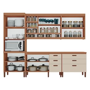 Apresentamos a Cozinha Modulada Completa Móveis Home! A cozinha Ester New combina elegância e funcionalidade com portas usinadas em baixo relevo e excelente divisão interna. A pintura touch proporciona um acabamento moderno, enquanto os puxadores ponto e concha na cor cobre adicionam sofisticação. Equipamentos como corrediças telescópicas e divisor de talheres garantem praticidade no uso diário. Adquira já a sua faça sua cozinha ficar supermoderna!