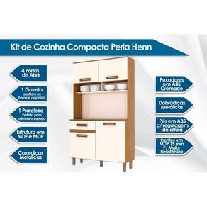 Cozinha Compacta Perla Briz c/4 Portas e 1 Gaveta 105x38x180cm Nature/Off White - Henn Marca: HENN