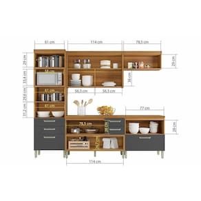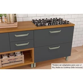 Abaixo segue os produtos do KIT: Cozinha Completa Princesa 4 Peças (1 Armário + 2 Balcões + 1 Paneleiro) C4P16 Freijo/Grafite - Nesher
