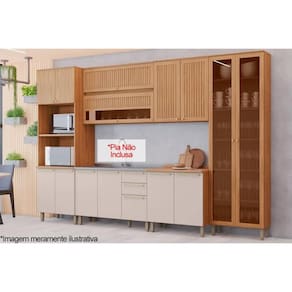 Cozinha Completa Requinte 7 Peças (2Aéreos+2Balcões+2Paneleiros+1Complemento) CZ104 Nature/Nature/Areia - Henn