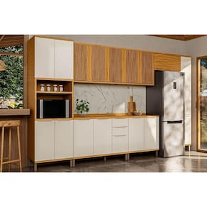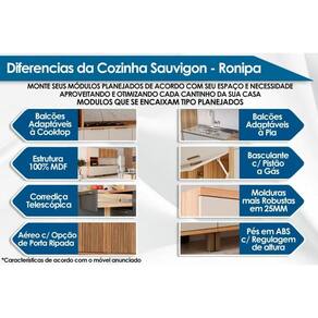 Cozinha Completa Sauvignon 7 Peças (3Aéreos+2Balcões+1Paneleiro+1TorreQuente) C7P91 Amendoa/Off White - Ronipa