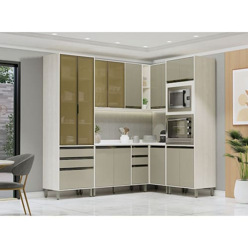 Ambiente composto por: 1-Paneleiro de Cozinha 70 cm 2 Portas com Vidro Reflecta Bronze 3 Gavetas Linea Luciane Moveis -236 x 70 x 51,5- 1-Paneleiro de Cozinha 70 cm Nichos para Forno e Microondas 4 Portas Linea Luciane Moveis -236 x 70 x 51,5- 1-Armario Aereo de Cozinha 120 cm 1 Porta Fechada 2 Portas com Vidro Reflecta Linea Luciane Moveis -85 x 120 x 33- 1-Armario Aereo Canto Reto de Cozinha 95 cm 2 Portas 4 Prateleiras Linea Luciane Moveis -85 x 95 x 53- 1-Balcao de Pia sem Tampo para Cozinha 120cm 2 Portas de Abrir, 3 Gavetas Linea Luciane Moveis -87 x 120 x 51,5- 1-Balcao Canto Reto de Cozinha com Tampo 95 cm 1 Porta de abrir 1 Prateleira Linea Luciane Moveis -89,5 x 95 x 53- 1-Tampo para Balcao 120cm MDP Linea Luciane Moveis -2,5 x 120 x 53-